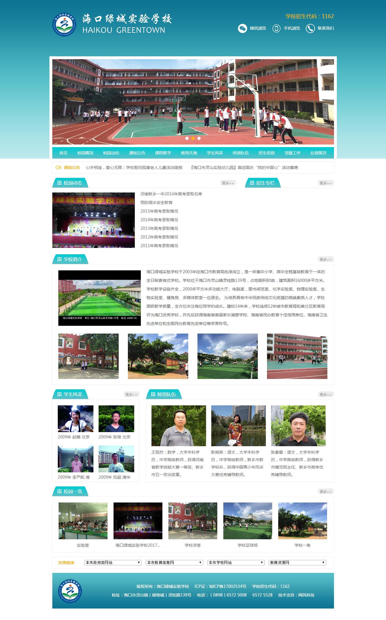 海口綠城(chéng)實驗學校于2003年(nián)經海口市(shì)教育局批準成立,是一(yī)所集中小(xiǎo)學、高(gāo)中全程基礎教育于一(yī)體的全日制寄宿式學校。學校位于海口市(shì)靈山鎮靈桂路(lù)139号,占地面積80畝,建築面積16000多(duō)平方米。學校教學設施齊全,2000多(duō)平方米多(duō)功能(néng)大廳、電(diàn)腦(nǎo)室,圖書閱覽室、化學實驗室、物(wù)理實驗室、生(shēng)物(wù)實驗室、健身房、多(duō)媒體教室一(yī)應俱全。 為(wèi)培養具有中華民(mín)族傳統文化底蘊的高(gāo)端素質人才,學校狠抓教學質量,全方位關注每位同學的成長(cháng)。建校14年(nián)來,學校連續12年(nián)被市(shì)教育局和美蘭區教育局評為(wèi)海口優秀學校,并先後獲得海南(nán)省首屆家長(cháng)滿意